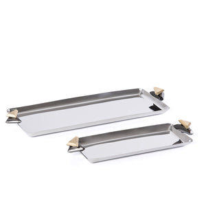 Set of 2 Rectangular Metal Serving Tray with gift box - Silver & Black
