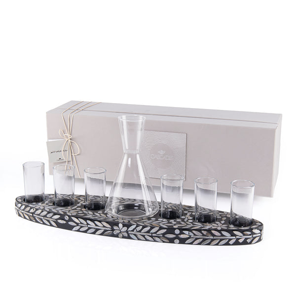 Set of 3 mother of pearl jars with tray and gift box - black