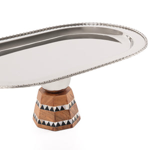 Elegant stainless steel oval tray with a sturdy base stand, designed for both style and functionality. Perfect for serving appetizers, desserts, or main dishes at gatherings, events, and everyday dining. Lightweight yet durable, rust-resistant, and easy to clean. A sophisticated addition to any table setting, making serving effortless and stylish.