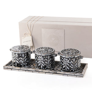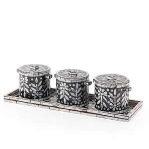 Set of 3 mother of pearl jars with tray and gift box - black