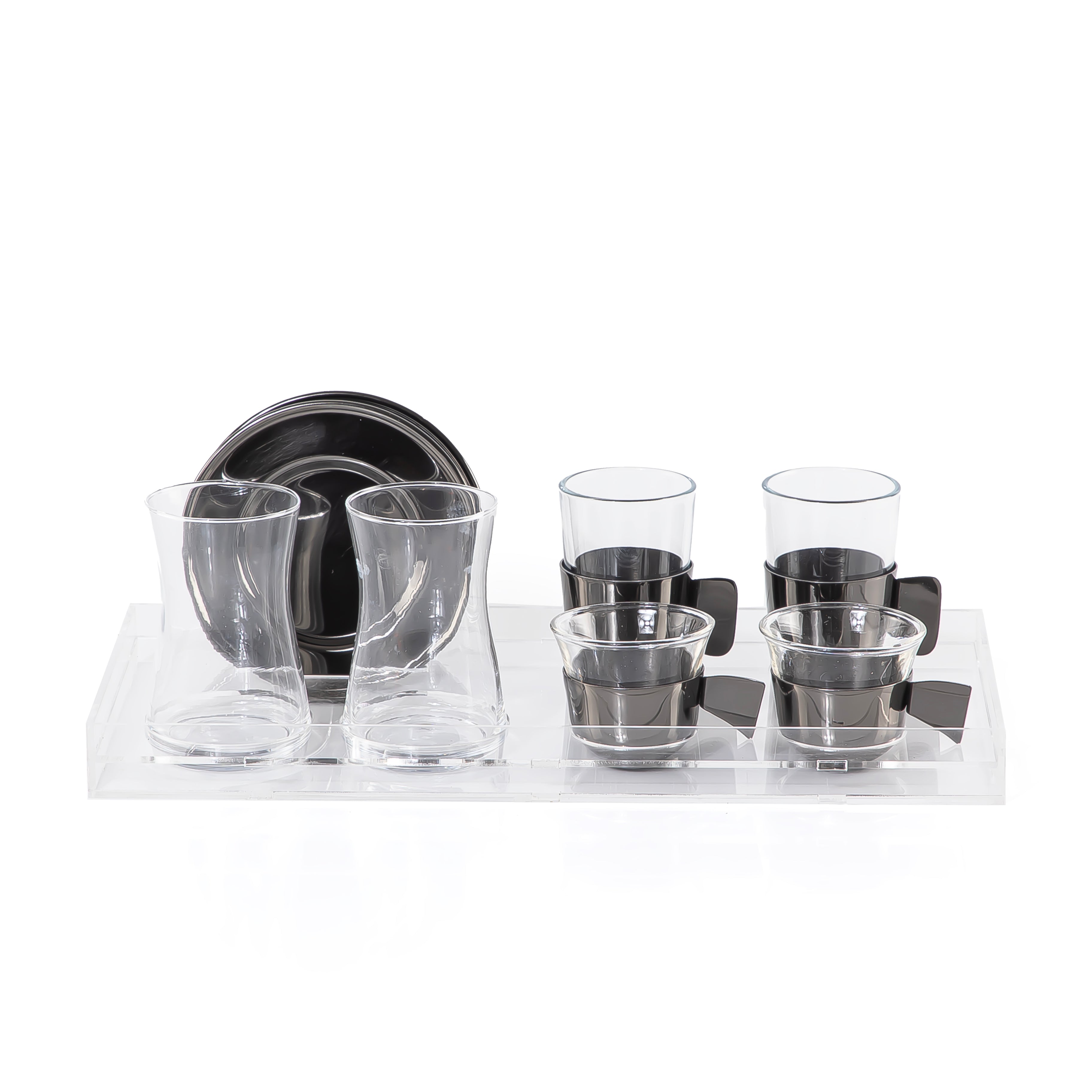 Set of 6 pcs of cups with 2 plates - black