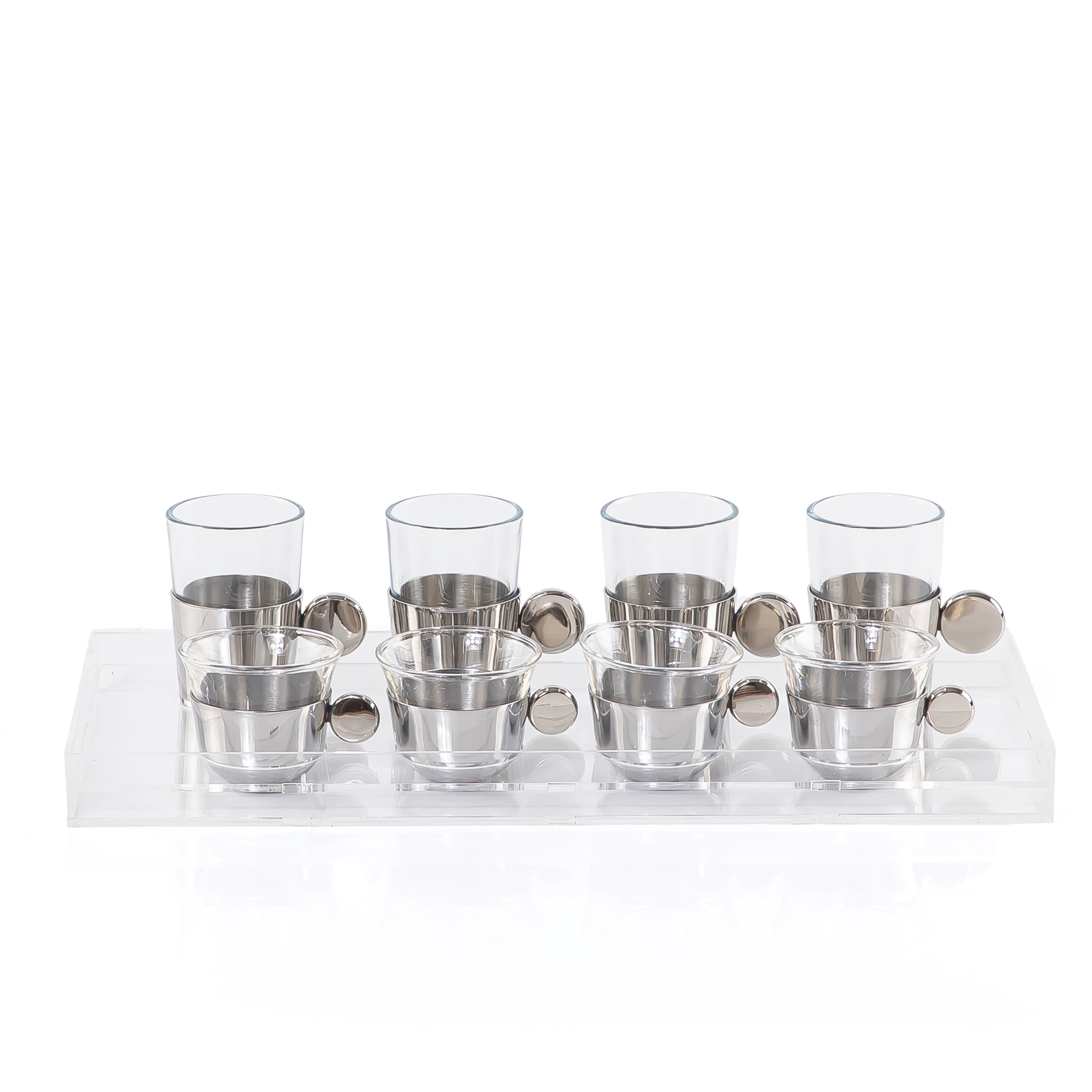 Home Set of 4 pcs tea stikana and 4 Arabic coffee cups with vantage handle - silver