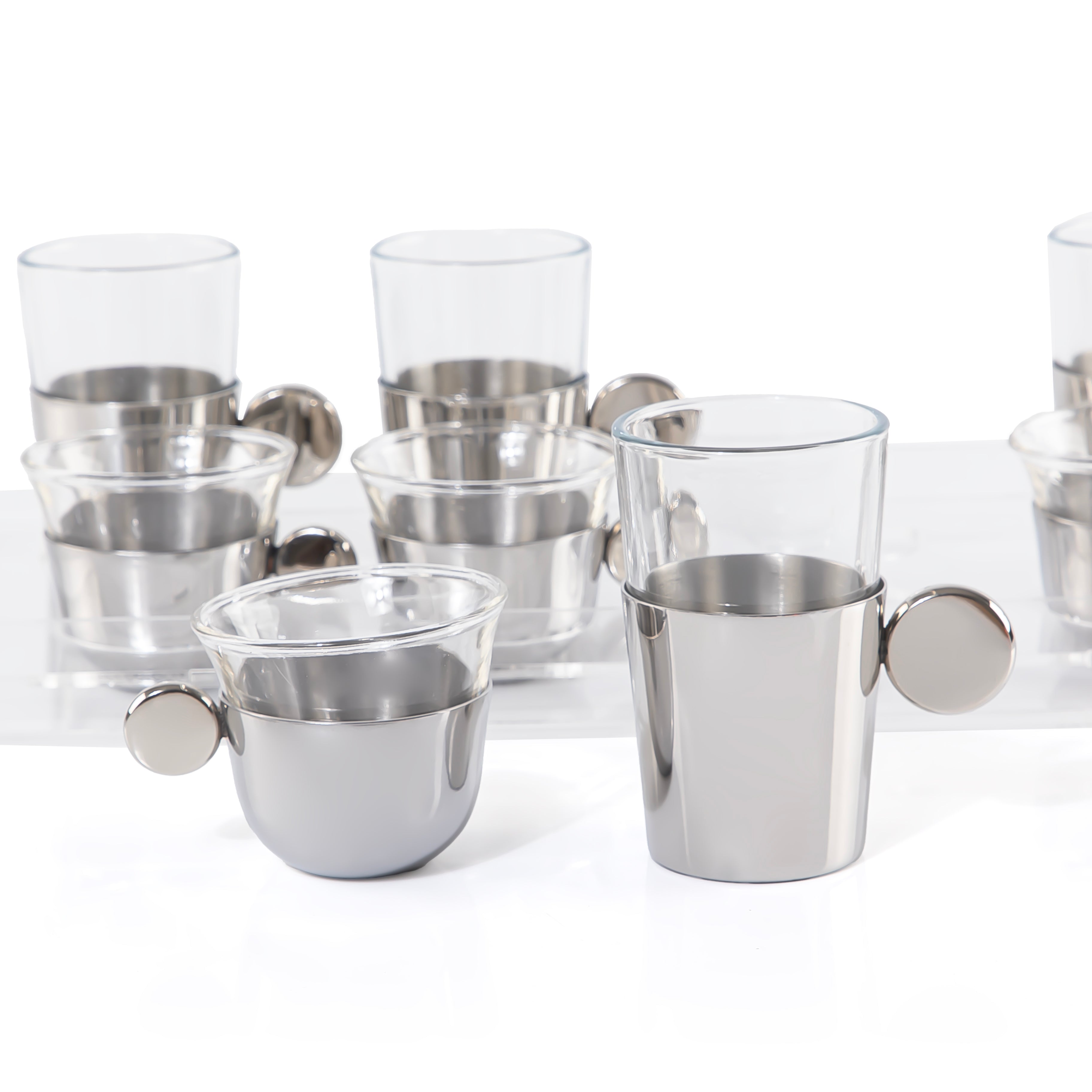 Set of 4 pcs tea stikana and 4 Arabic coffee cups with vantage handle - silver