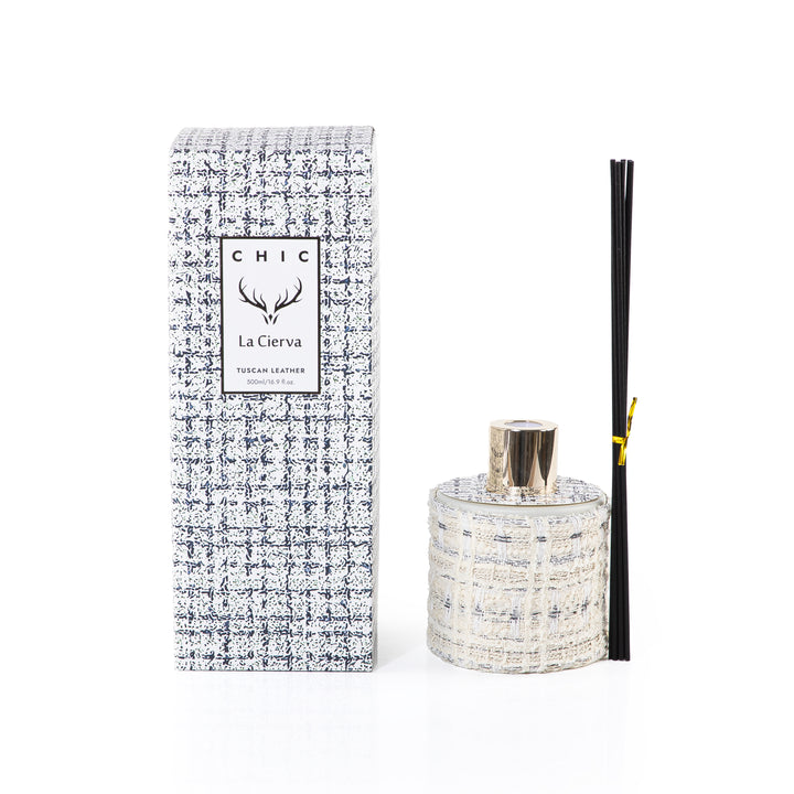 Experience the rich, sophisticated aroma of the Tuscan Leather Fragrance Diffuser in beige by La Cierva. This 500 ml diffuser fills your space with a refined blend of leather notes, creating an elegant and inviting atmosphere. Ideal for enhancing any room, it offers long-lasting fragrance diffusion for an enduring sensory experience. Perfect for those who appreciate luxury scents with a subtle yet powerful presence.