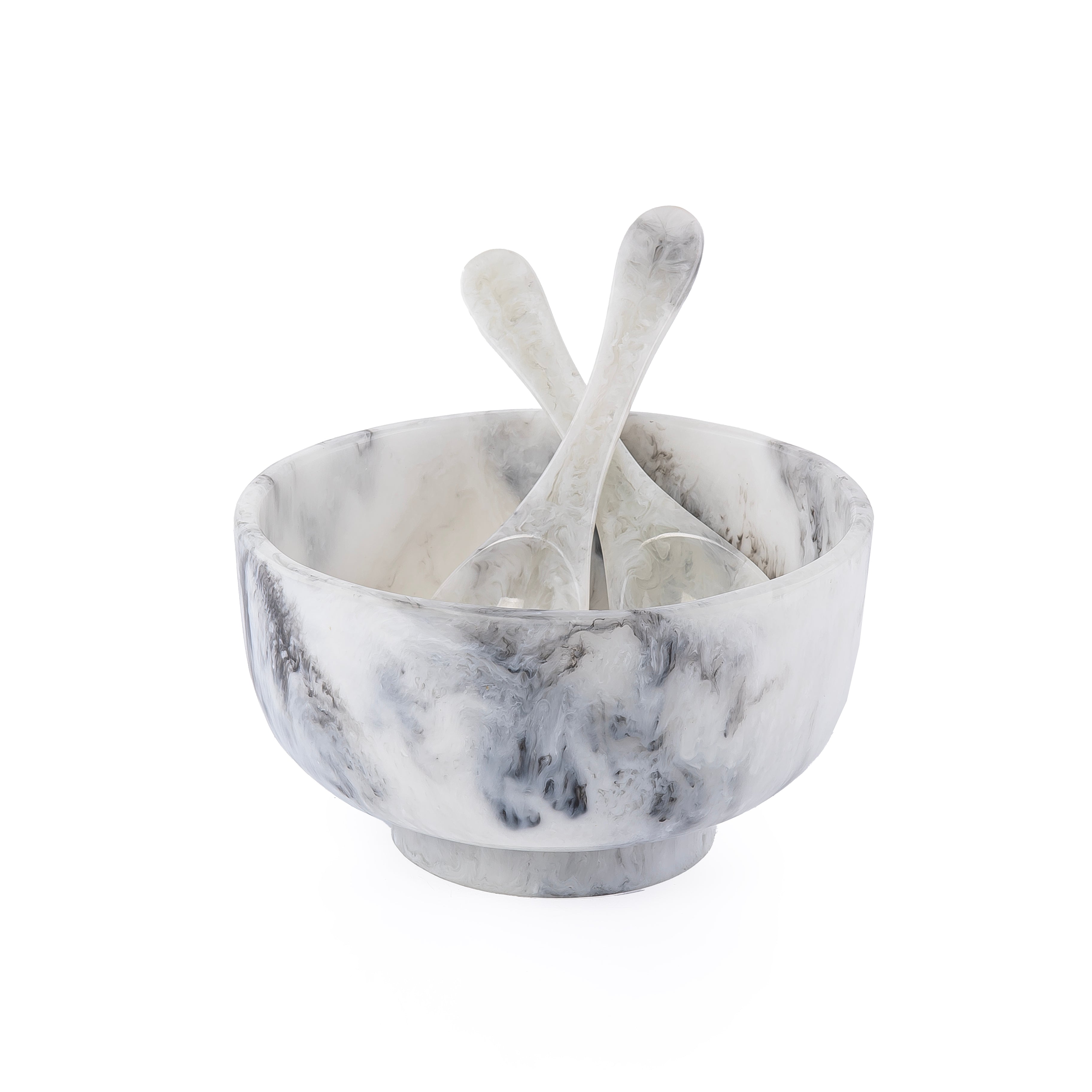 Resin Serving Bowl with 2 Spoons - Black & White