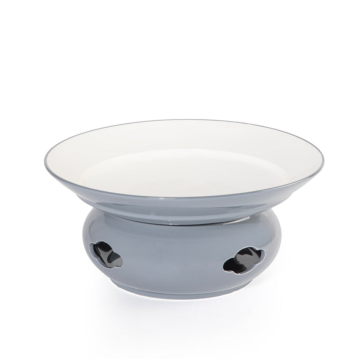 Elegant ceramic plate with a practical stove stand , perfect for serving hot dishes while keeping them warm. A beautiful and functional piece that adds a touch of sophistication to your dining experience.