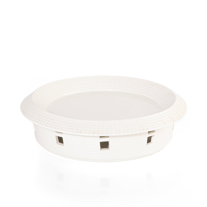 Elegant ceramic plate with a practical stove stand , perfect for serving hot dishes while keeping them warm. A beautiful and functional piece that adds a touch of sophistication to your dining experience.