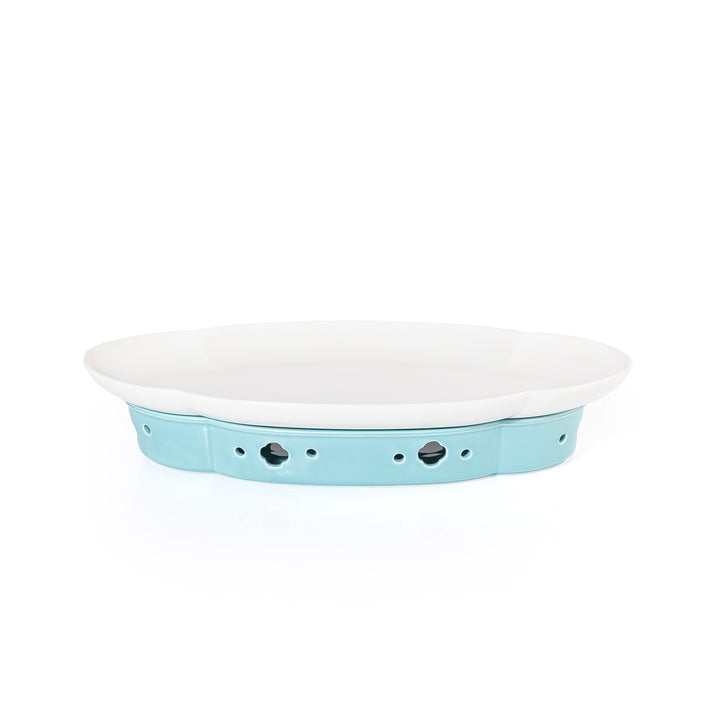 Elegant ceramic plate with a practical stove stand , perfect for serving hot dishes while keeping them warm. A beautiful and functional piece that adds a touch of sophistication to your dining experience.