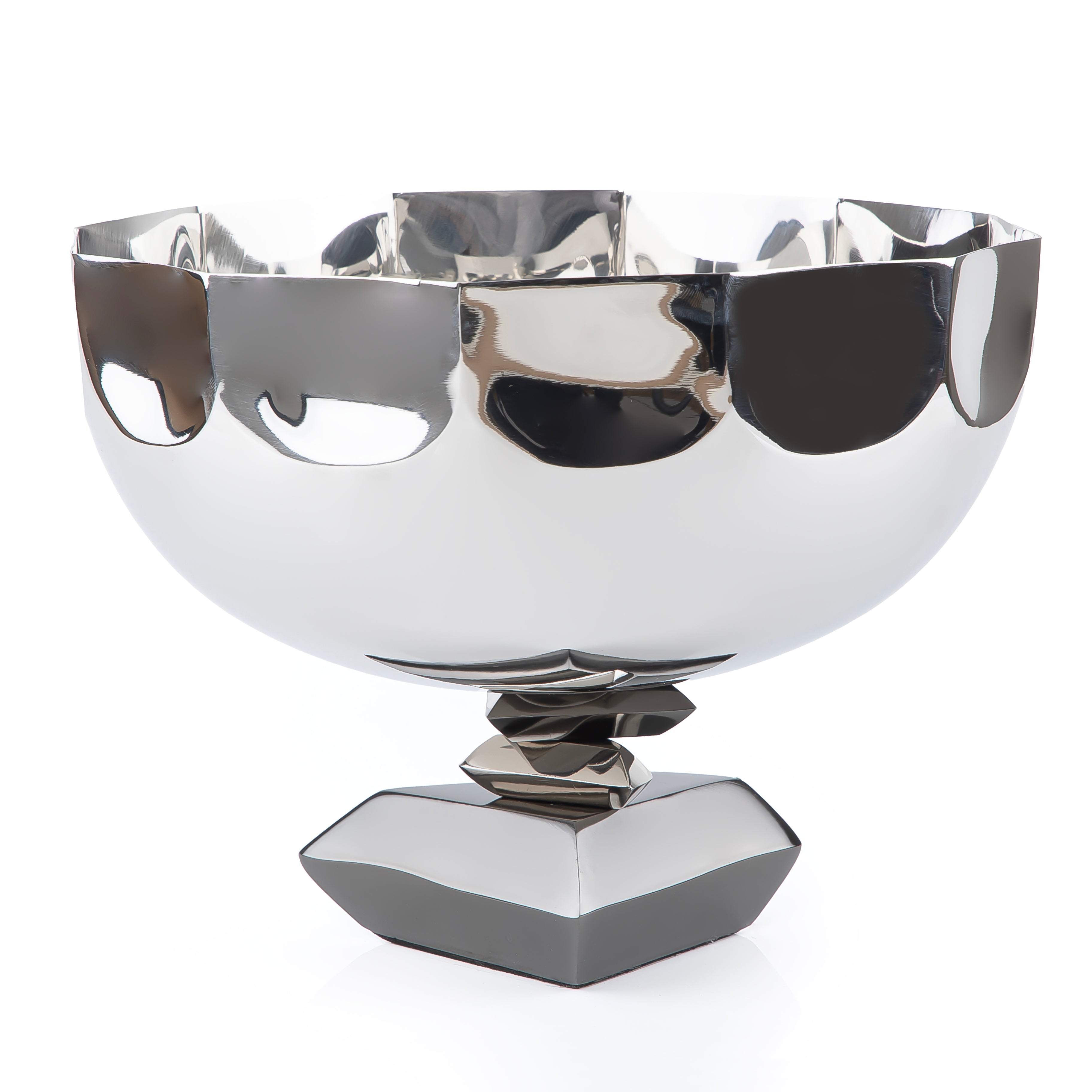 Chose the option: Round Metal Serving Bowl with base stand with gift box - Silver