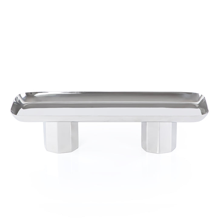 Rectangular silver metal stand with legs - large