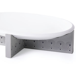 Elevate your space with our designer printed wooden stand. Crafted with dark smoke grey leather and accented with a round ceramic plate, this stand adds a touch of sophistication to any room.