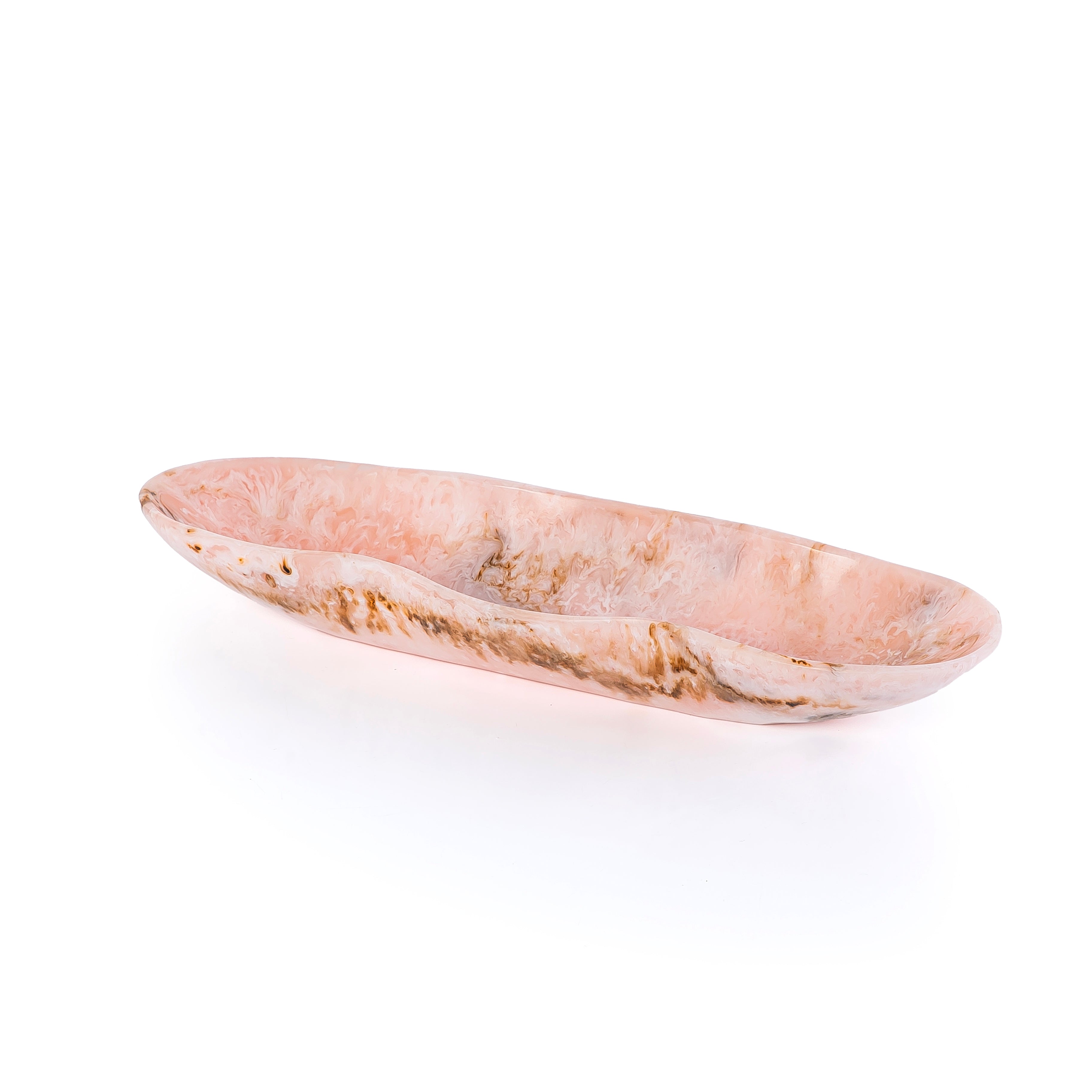Add a touch of elegance to your table with this Resin Oval Serving Bowl in a warm color tone. Designed with a sleek oval shape, it is perfect for serving snacks, salads, fruits, or side dishes. Crafted from high-quality resin, the bowl is both lightweight and durable, making it easy to maintain and ideal for everyday use and special occasions. Its rich amber color brings a modern yet cozy aesthetic that complements any table setting.
