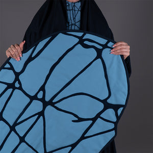 an incense burner and a box for incense are made of reinforced cardboard covered with paper decorated with drawings , a prayer mat, Prayer dress , Prayer mat all in the Cardboard box with acrylic cover, wrapped with blue color printed paper.