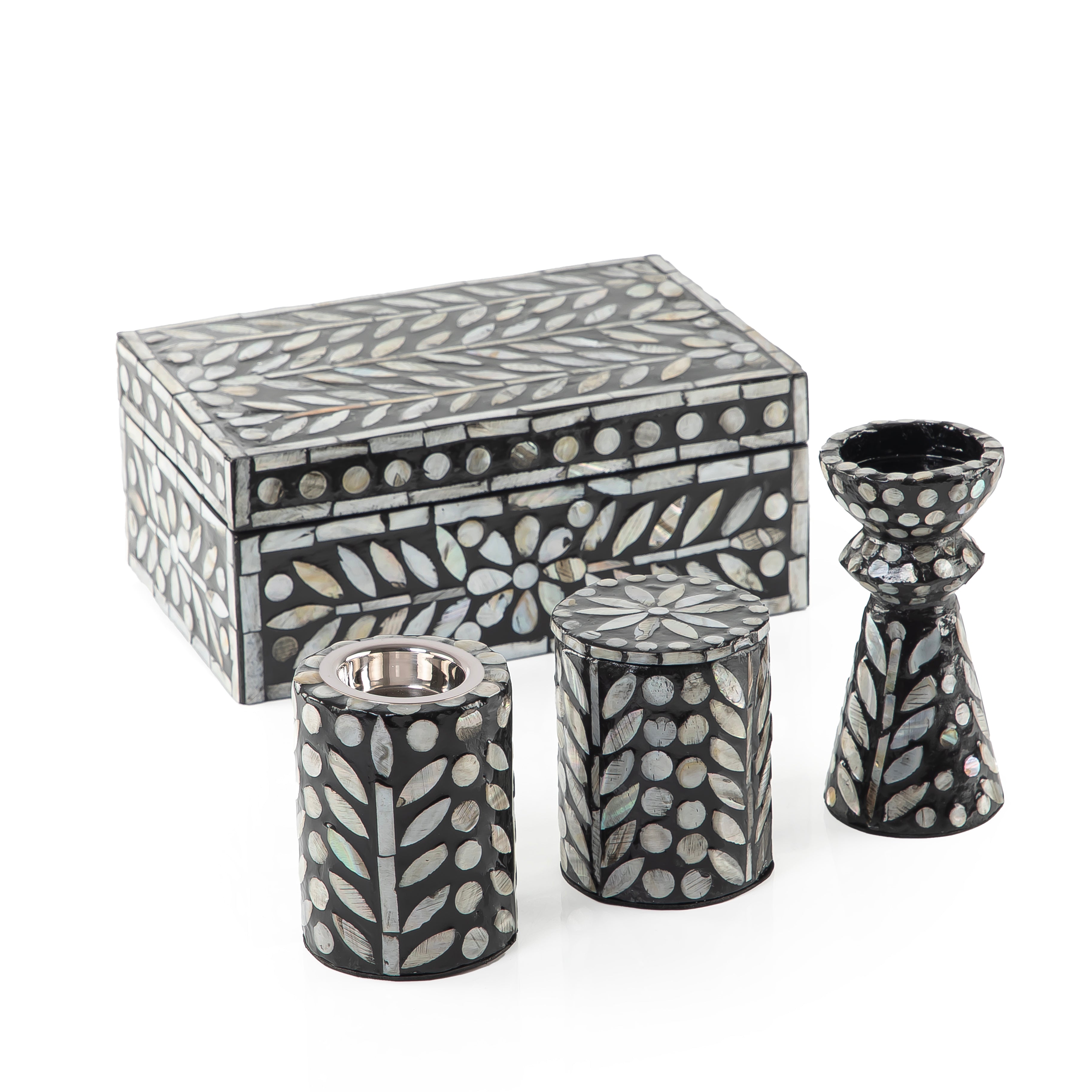 Home Set of mother pearl (mabkhar + bakhor box + candle holder ) in box - Black