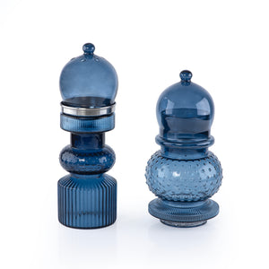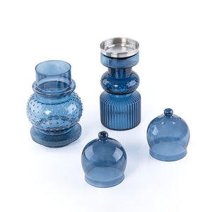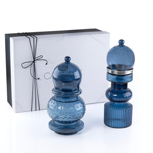 2 Pcs Small Mabkhar Set Glass Holder with Metal Burner & Dome – Blue