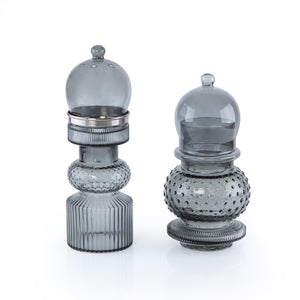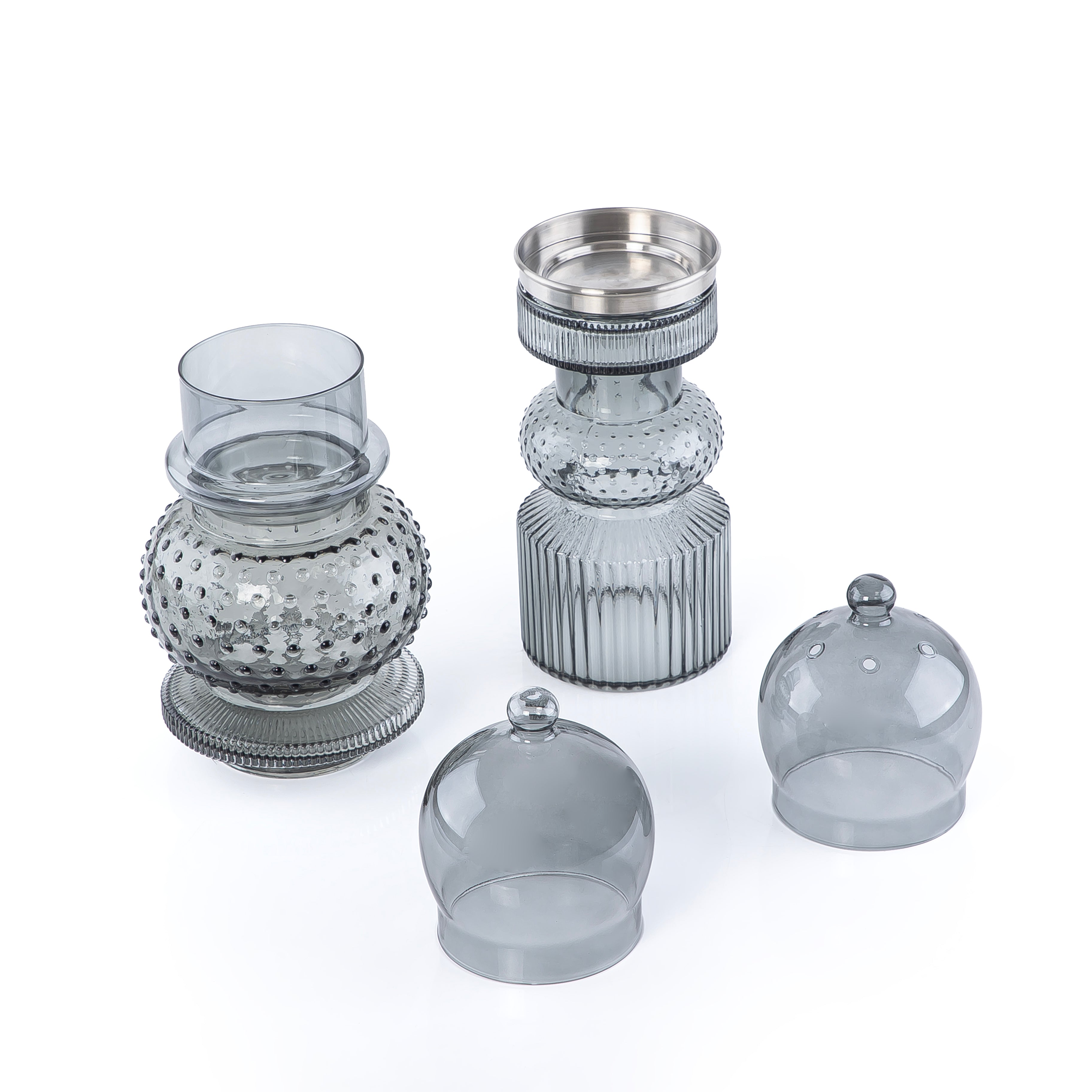 2 Pcs Small Mabkhar Set Glass Holder with Metal Burner & Dome – Grey