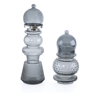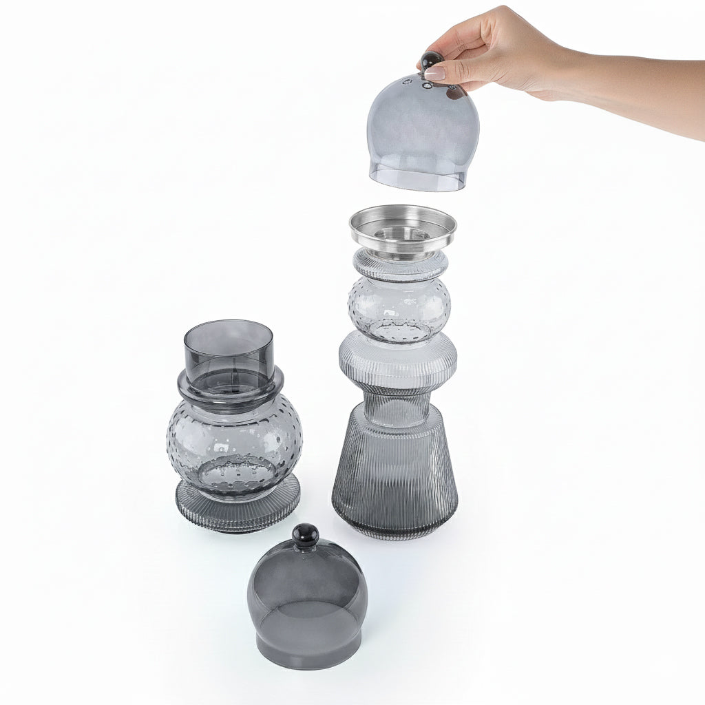 2 Pcs Large Mabkhar Set Glass Holder with Metal Burner & Dome – Grey