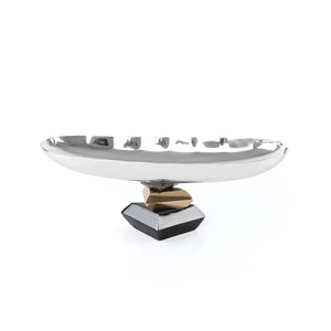 Elegant Metal Oval Serving Dish Silver with Black - Medium