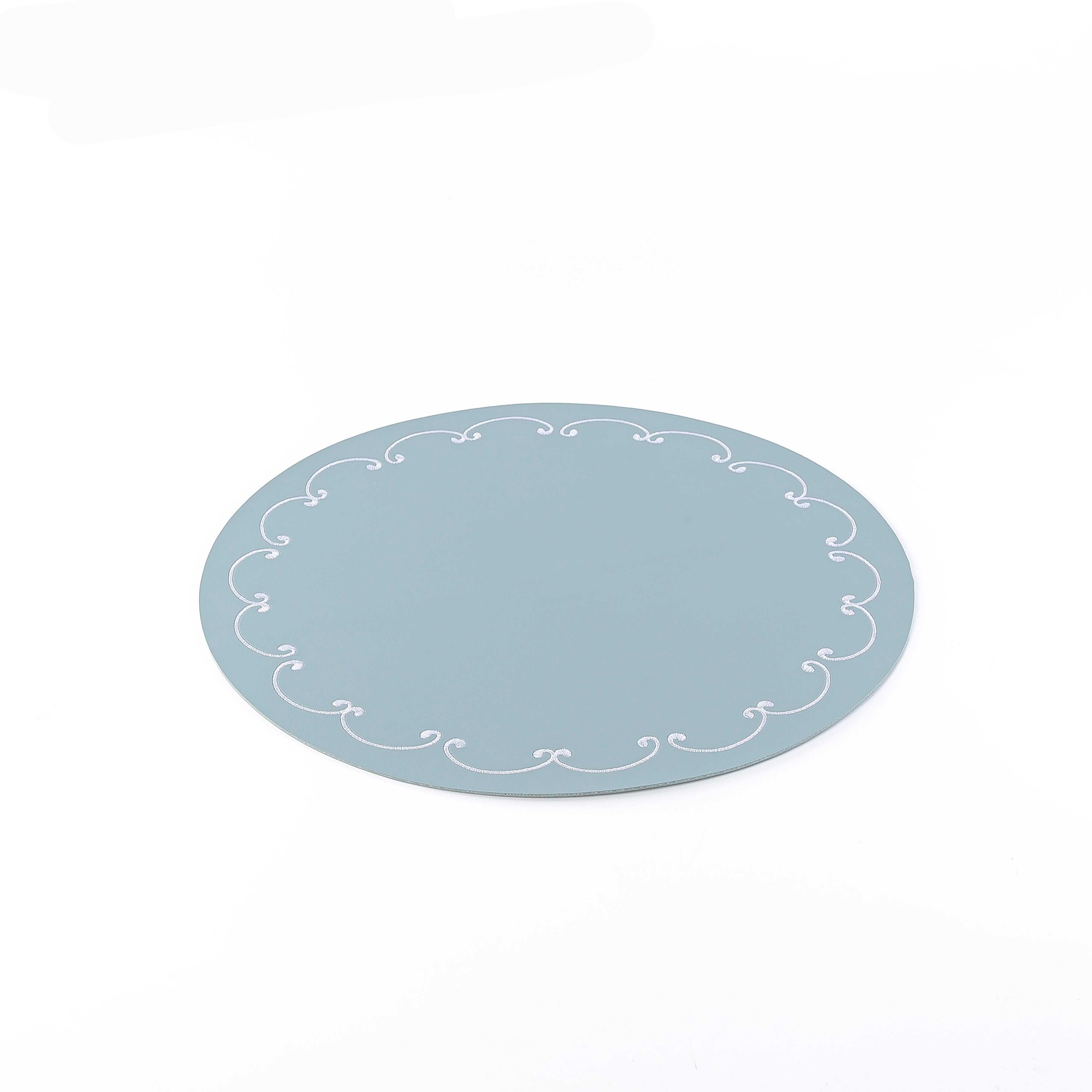 Set of 6 Circular Faux Leather Dining Placemat - Blue