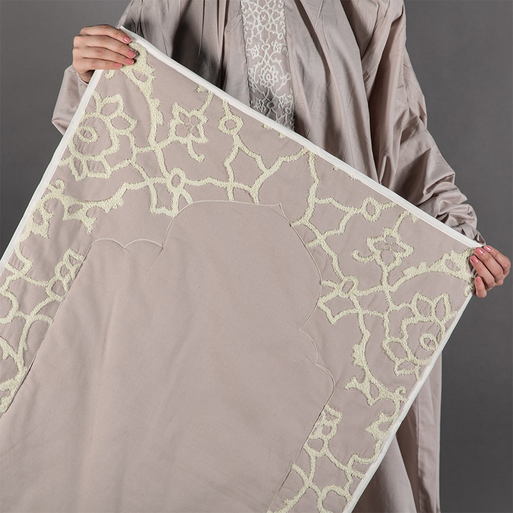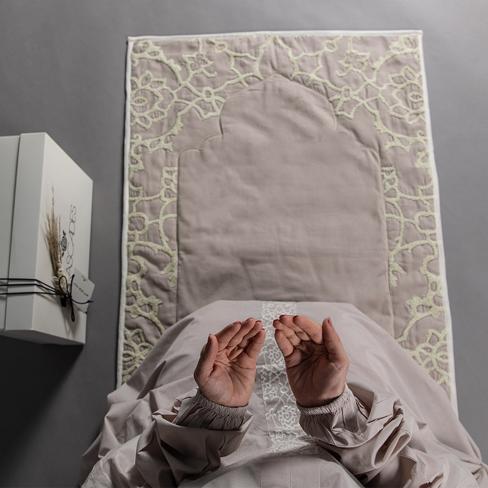 This prayer dress is made from premium 100% fine cotton fabric, offering exceptional comfort and breathability for your prayers. Adorned with exquisite embroidery, it exudes elegance and grace. The set also includes a beautifully coordinated prayer mat, crafted from fine cotton fabric. Featuring delicate embroidery, contrast piping along the edges, and soft polyfill wadding, the mat provides extra comfort and support for a peaceful prayer experience.