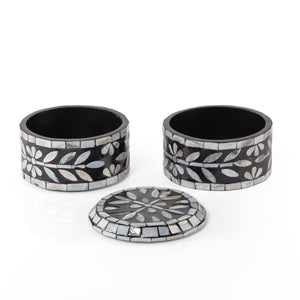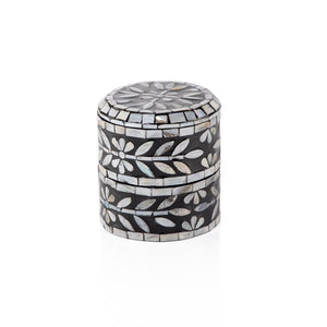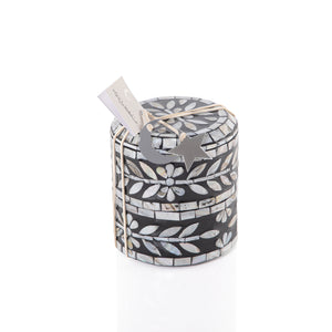 A stylish 2-story box with a grey finish, crafted from MDF and MOP. This compact storage solution features a cover and is perfect for organizing your essentials.