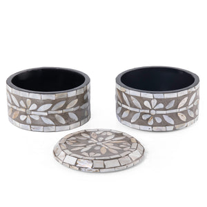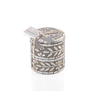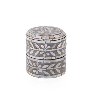 A stylish 2-story box with a grey finish, crafted from MDF and MOP. This compact storage solution features a cover and is perfect for organizing your essentials.