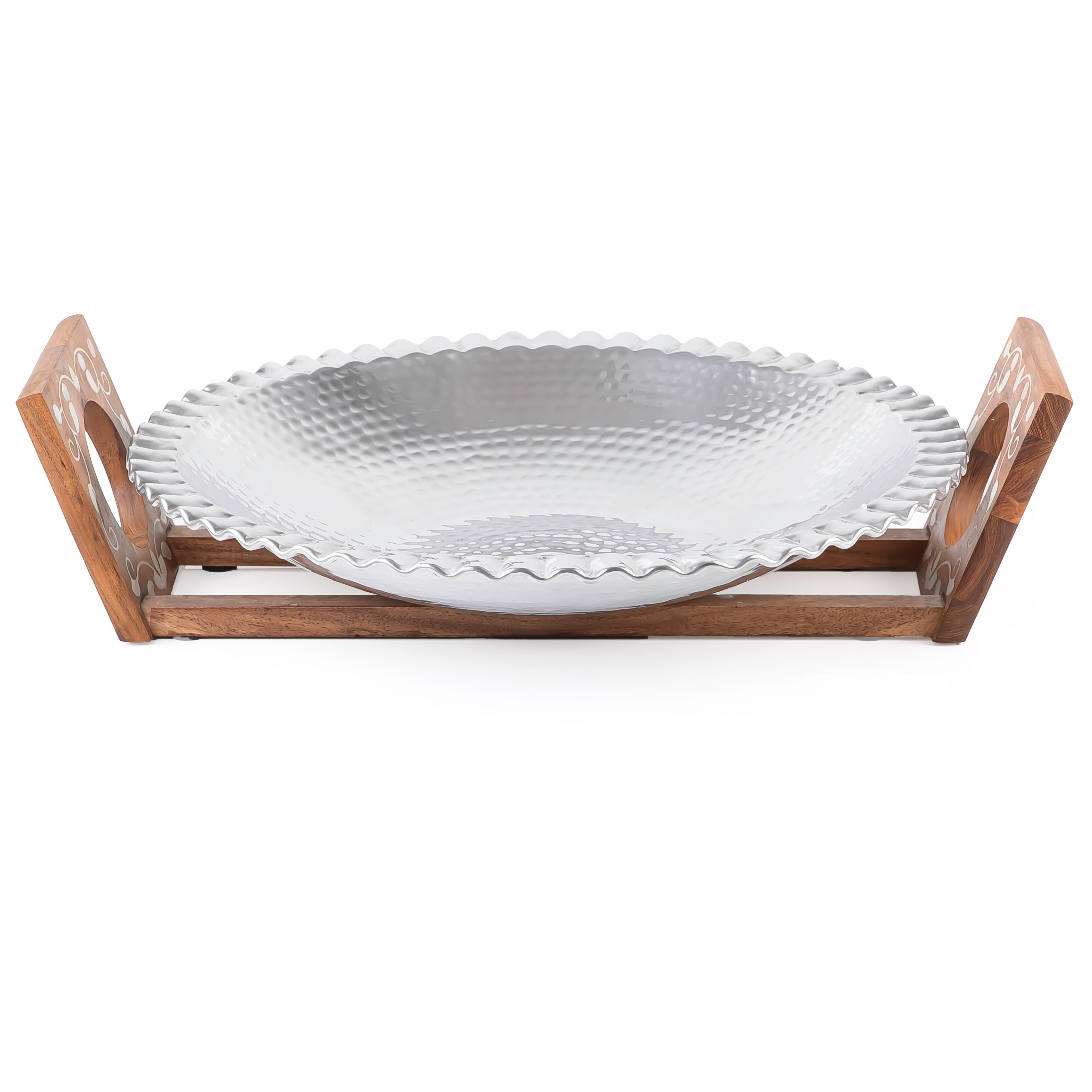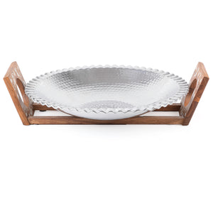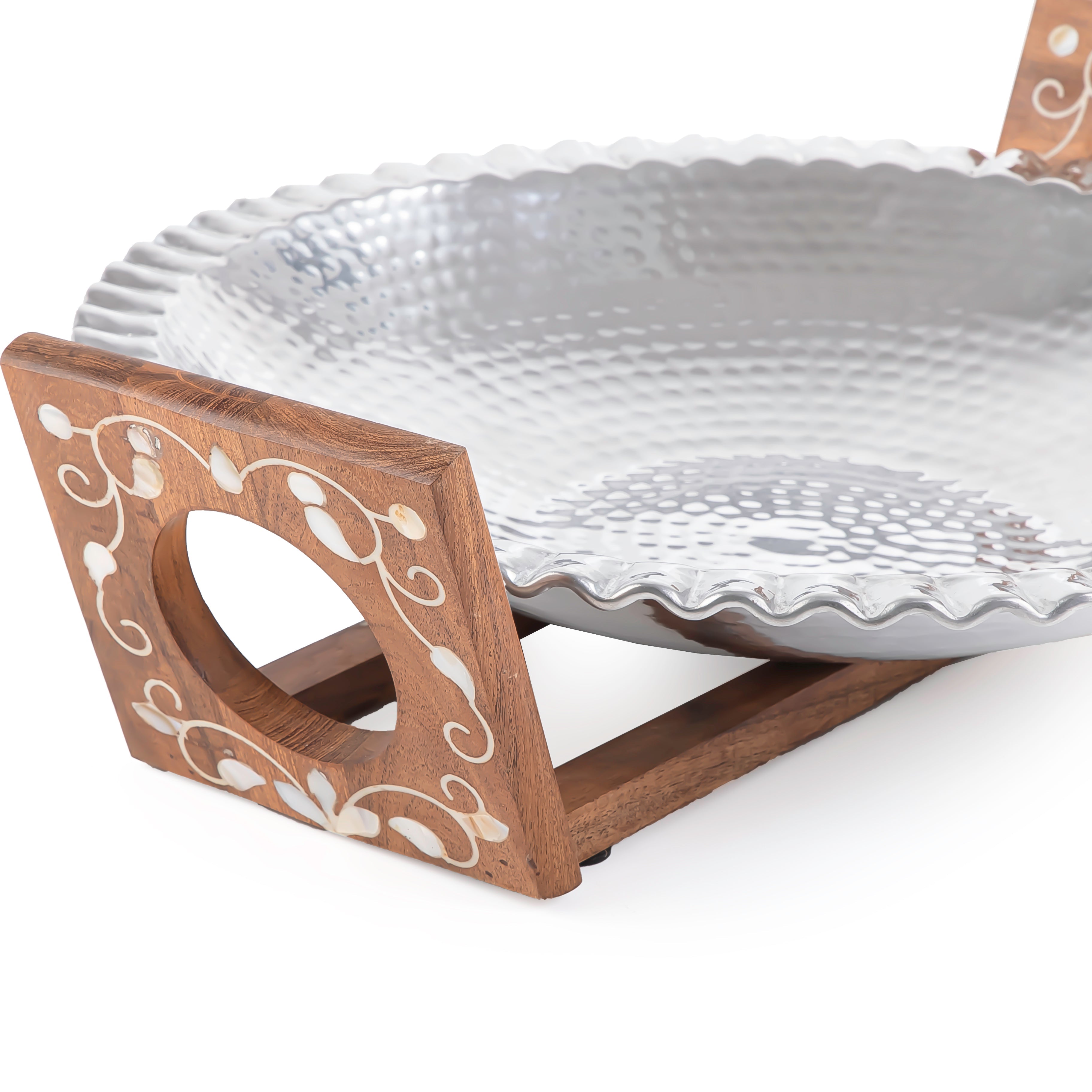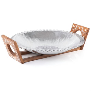 This stylish Aluminum tawa with MOP wood stand is sure to be an eye-catching addition to any table. Its high quality Aluminum construction provides durability and a timeless elegance that will last for years. This tray is an essential for any home.