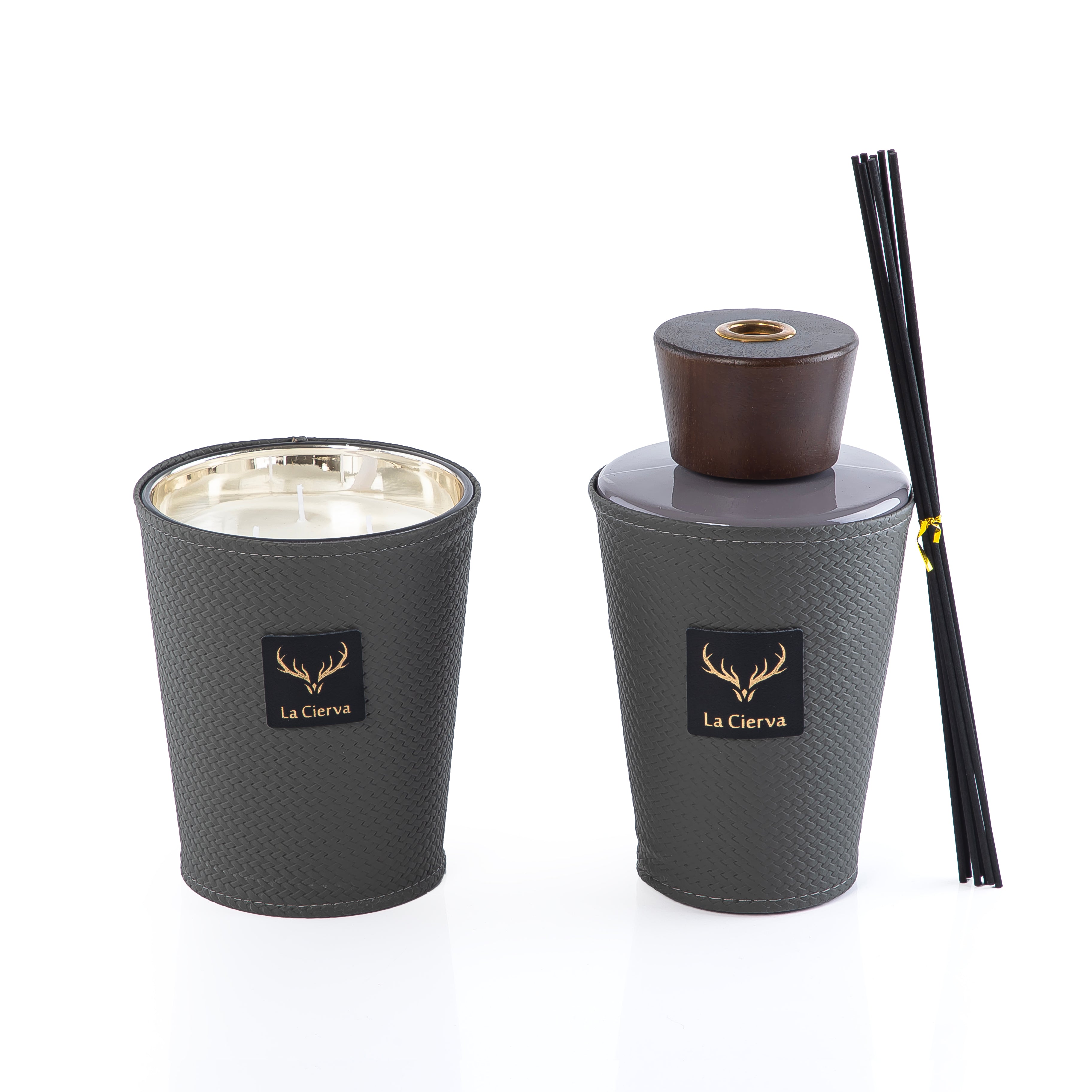Marrakesh Oud Set of Candle & Diffuser -DARK GRAY from la cierva with acrylic box