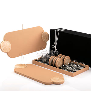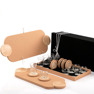 Set of 2 leather trays with cups and coaster with gift box