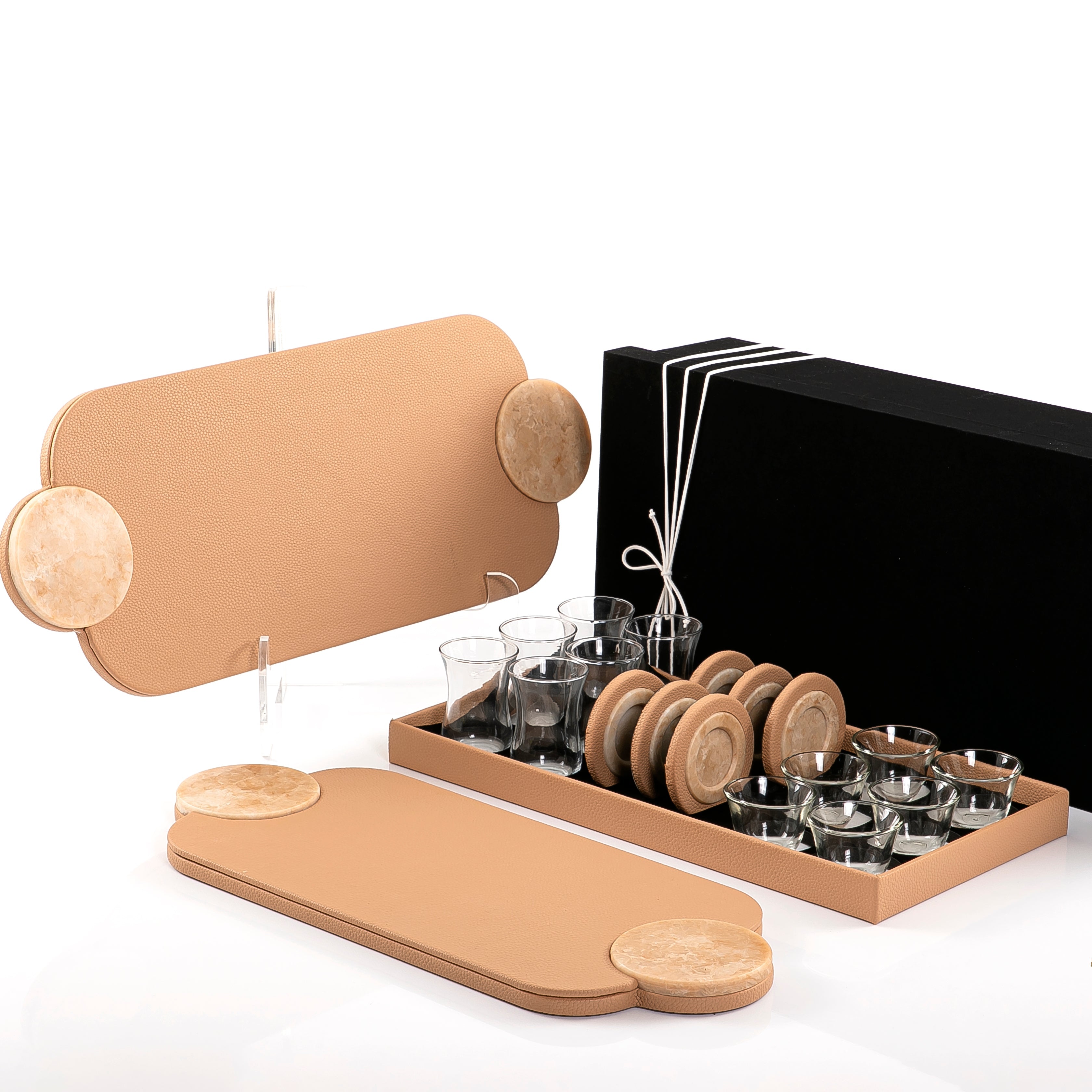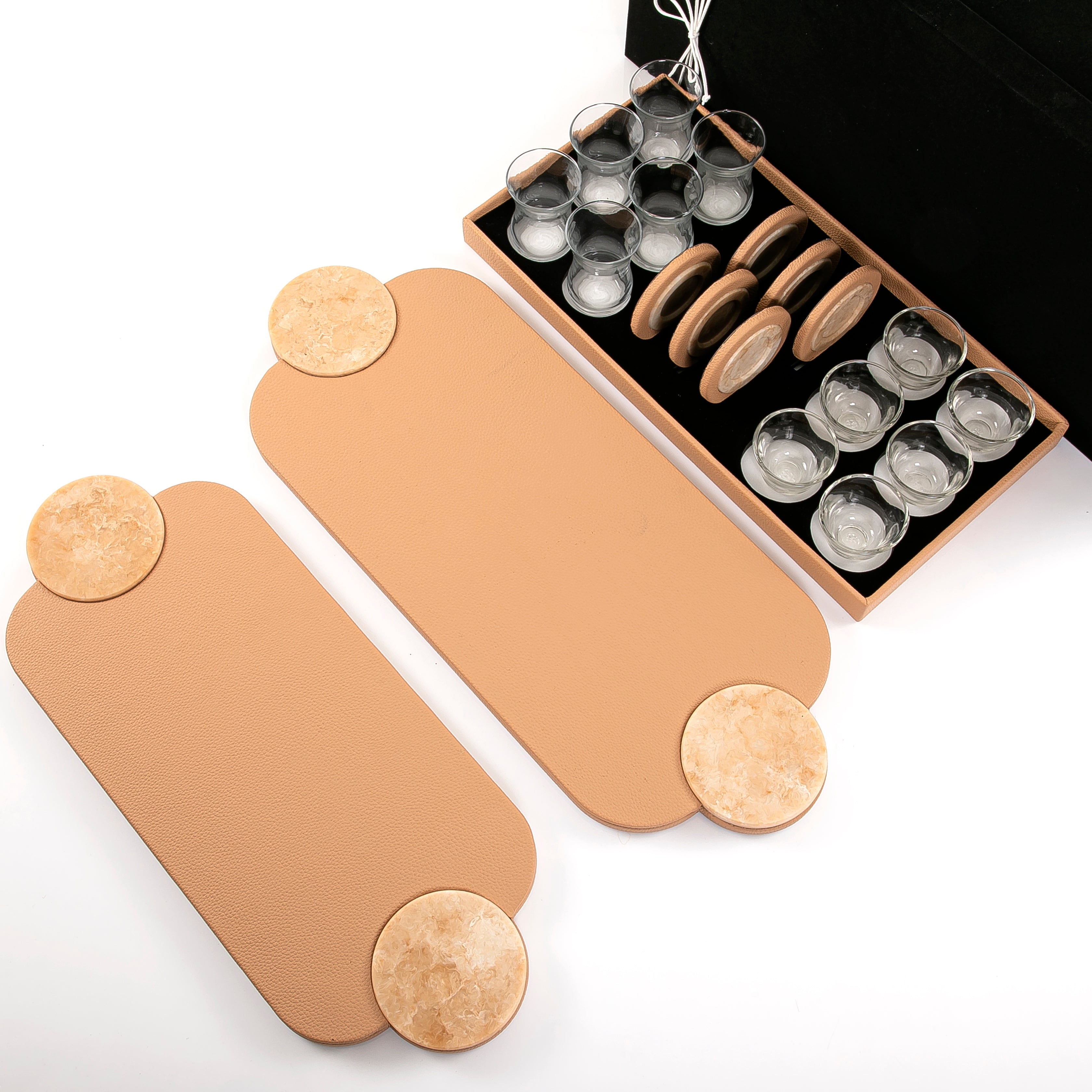 Chose the option: Set of 2 leather trays with cups and coaster with gift box