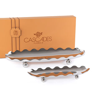 Set of 2 Oval Metal stand With wavy edges with gift box - Silver