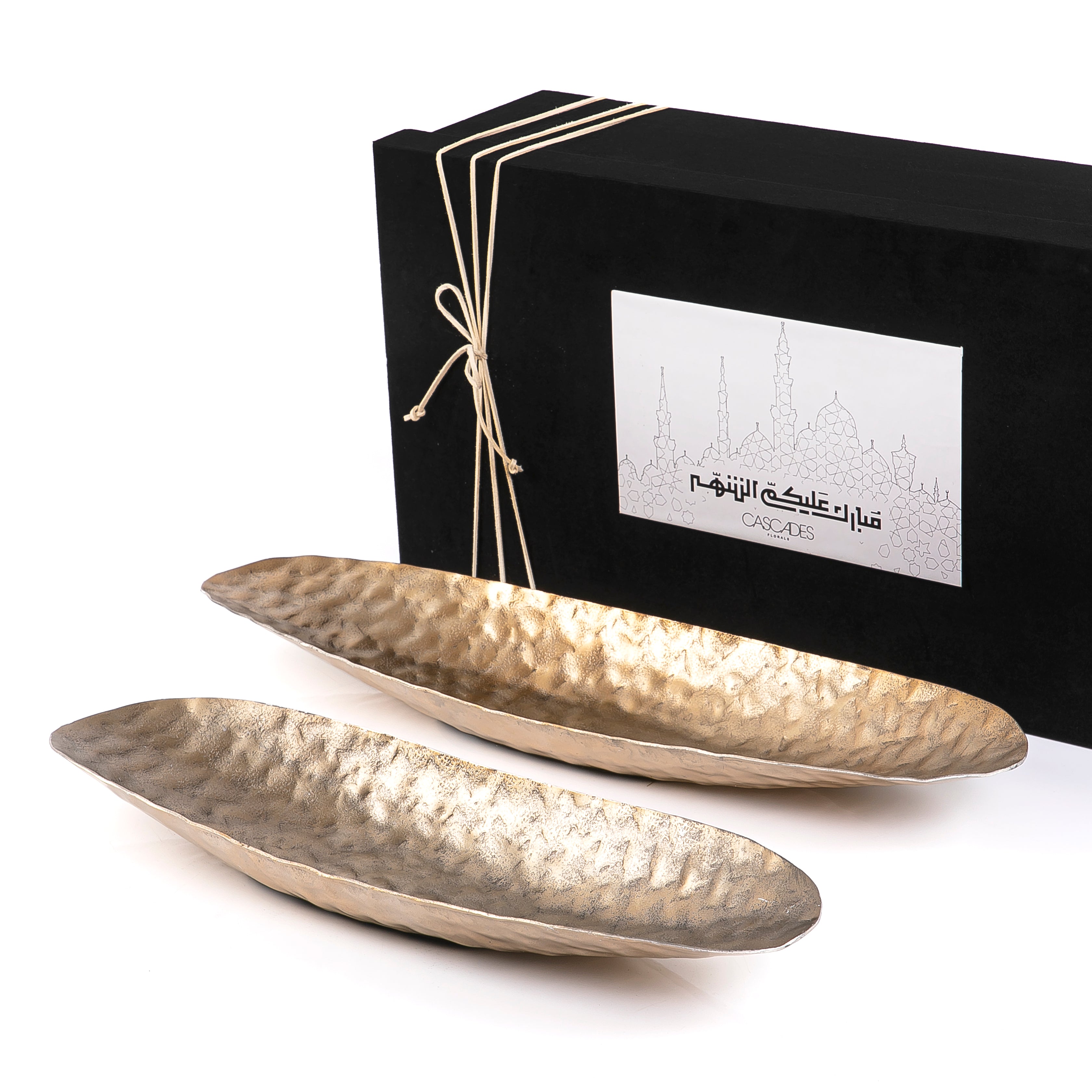 These metal trays come in a set of two, perfect for serving appetizers or desserts to your guests. With a sleek design and sturdy construction, they are both practical and stylish. Packaged in a beautiful gift box, they also make for a great housewarming or wedding gift.