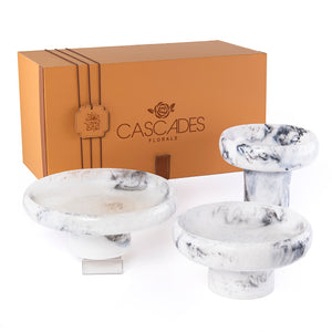 Elevate your table setting with this refined resin serving set stands , Perfect for presenting appetizers, desserts, or decorative displays, its suitable size makes it ideal for gatherings or everyday elegance. The durable resin construction ensures lasting beauty while the contemporary aesthetic complements any décor. A versatile accent piece that transforms ordinary moments into occasions of understated luxury.