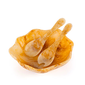 Home Set of Resin Large Bowl , 2 Spoons with gift box - Amber