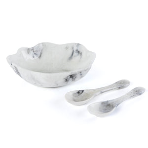 Set of Resin Large Bowl , 2 Spoons with gift box - White & Black