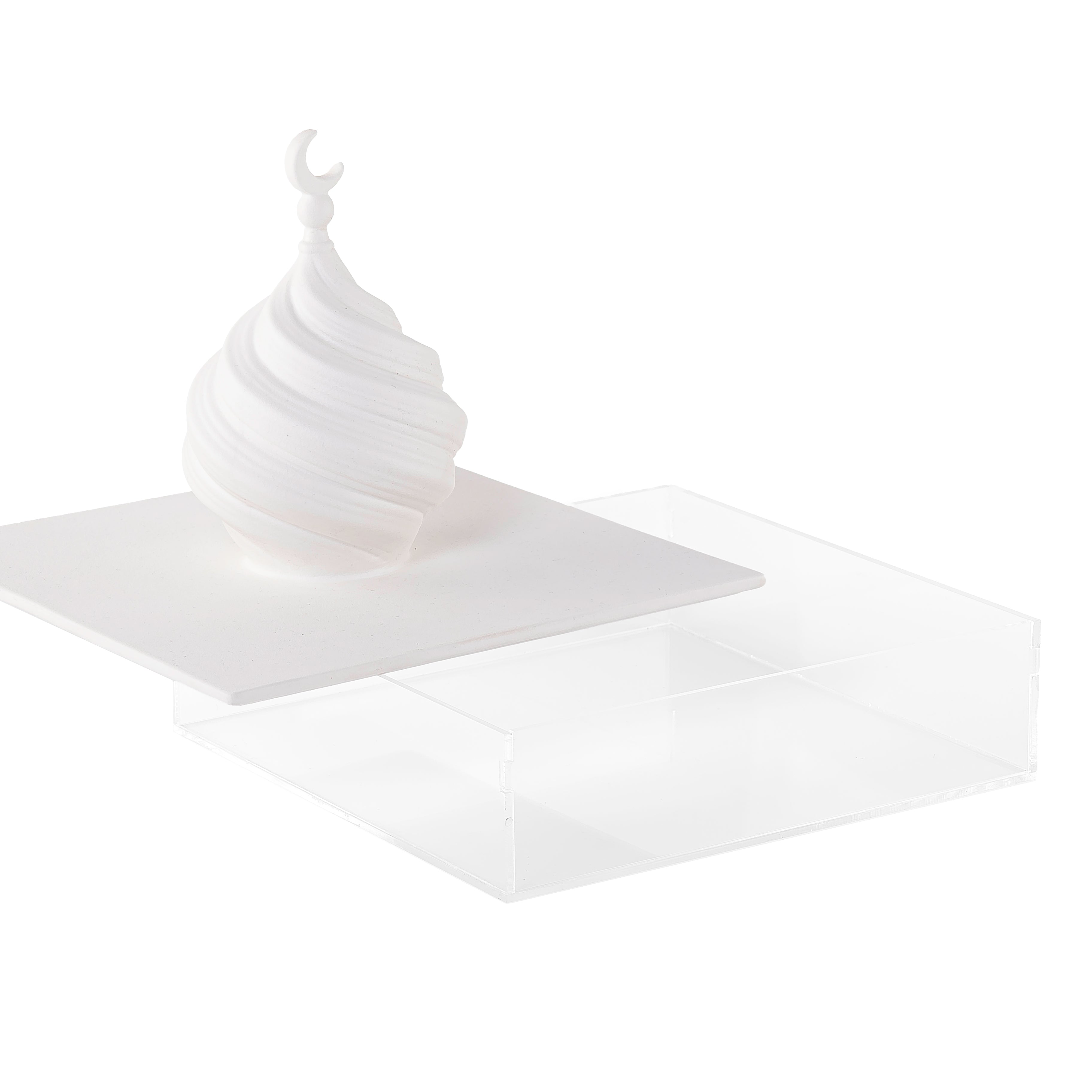 This sleek square box with white pottery cover is a perfect addition to your home decor.