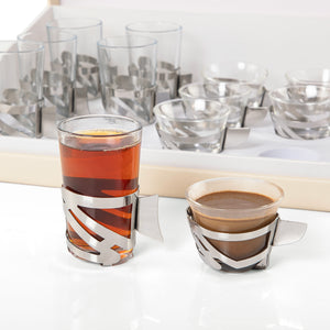 Set of 12 pcs tea and coffee cups with gift box - silver