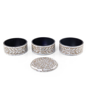 A stylish 3-story box with a beige finish, crafted from MDF and MOP. This compact storage solution features a cover and is perfect for organizing your essentials.