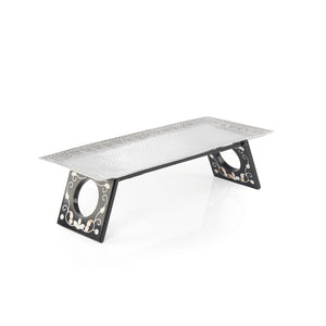 Increase your home's elegance with this rectangle Aluminium Tray with MOP resin stand. It features a luxurious marble handle for easy carrying and a sophisticated touch. Ideal for serving or organizing, it adds both style and functionality to any space.