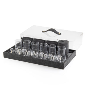 طقم أكواب وكوستر جلد مع بوكس هدايا - أسود