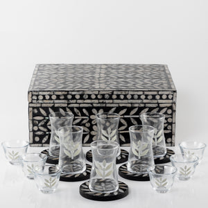طقم صدف مكون من 12 قاعدة أكواب مع 6 أكواب للقهوة و 6 أكواب للشاي مع بوكس - أسود