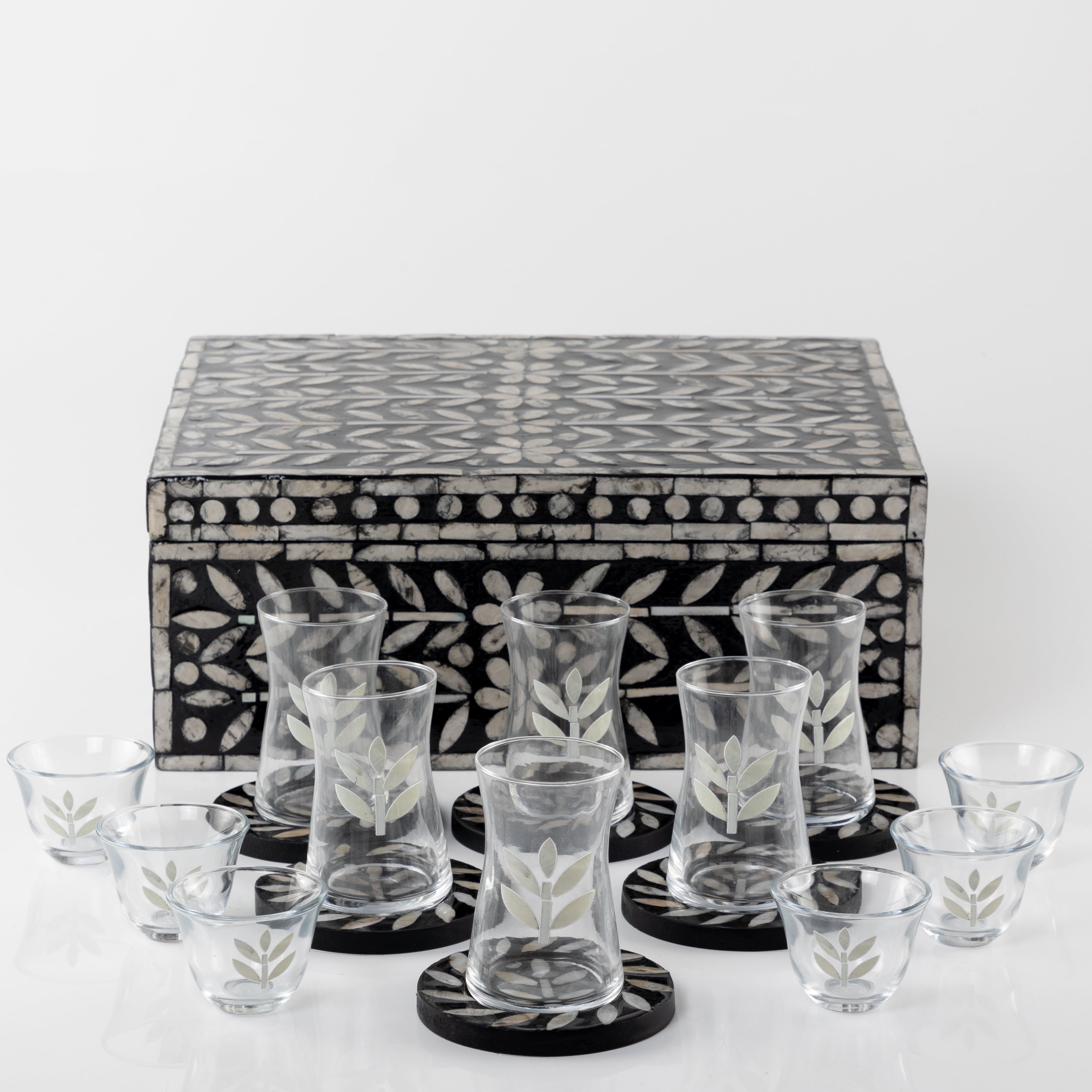 Chose the option: طقم صدف مكون من 12 قاعدة أكواب مع 6 أكواب للقهوة و 6 أكواب للشاي مع بوكس - أسود