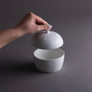 وعاء سيراميك باللون الأبيض المطفي مع غطاء