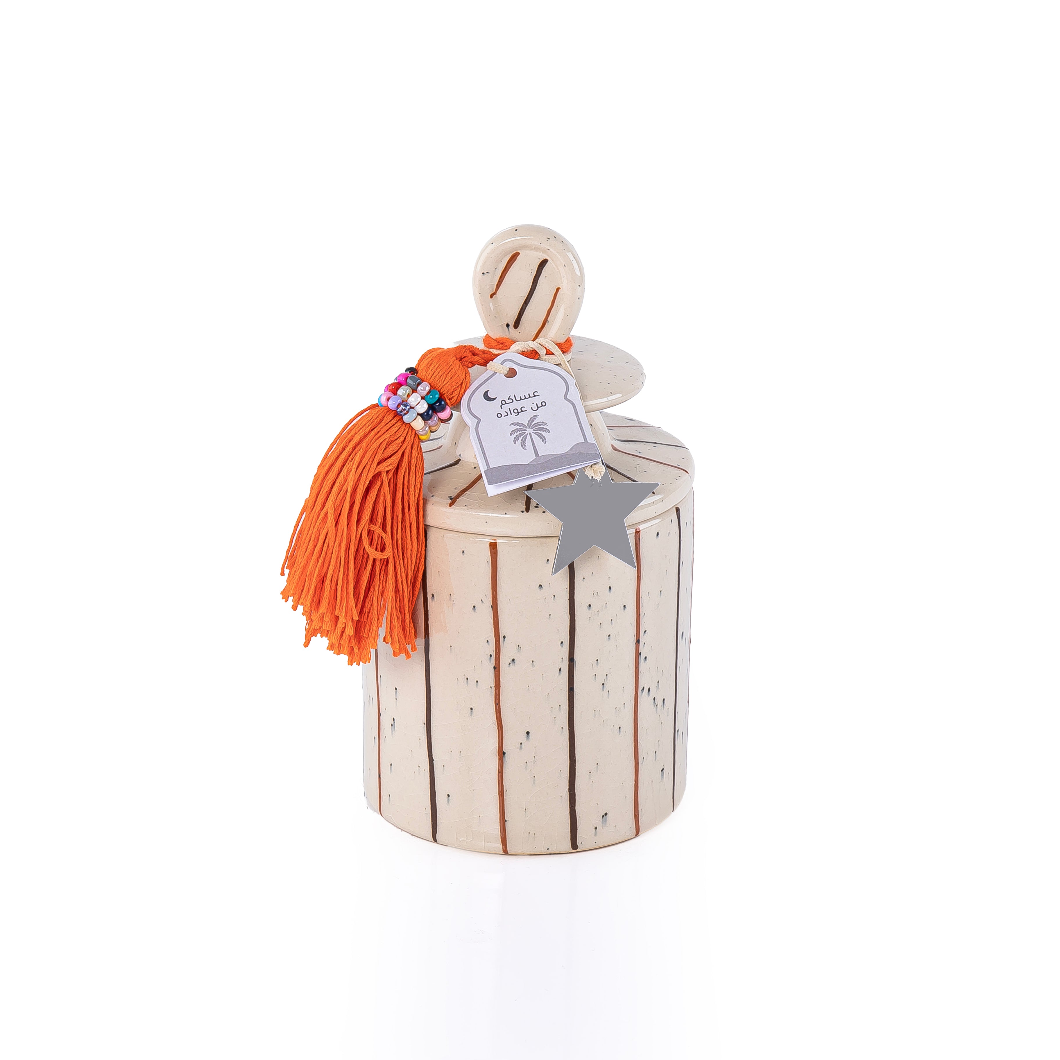 نقدم لكم جار القريقعان الخزفي - الإضافة المثالية لاحتفالاتكم المميزة! صُمم هذا الجار الخزفي الرائع لحفظ تشكيلة متنوعة من الحلويات والشوكولاتة، ليضفي لمسة من الأناقة والفخامة على مناسباتكم. صُنع هذاالجار بدقة متناهية، وهو الطريقة الأمثل للارتقاء بمستوى ضيافتكم.