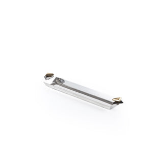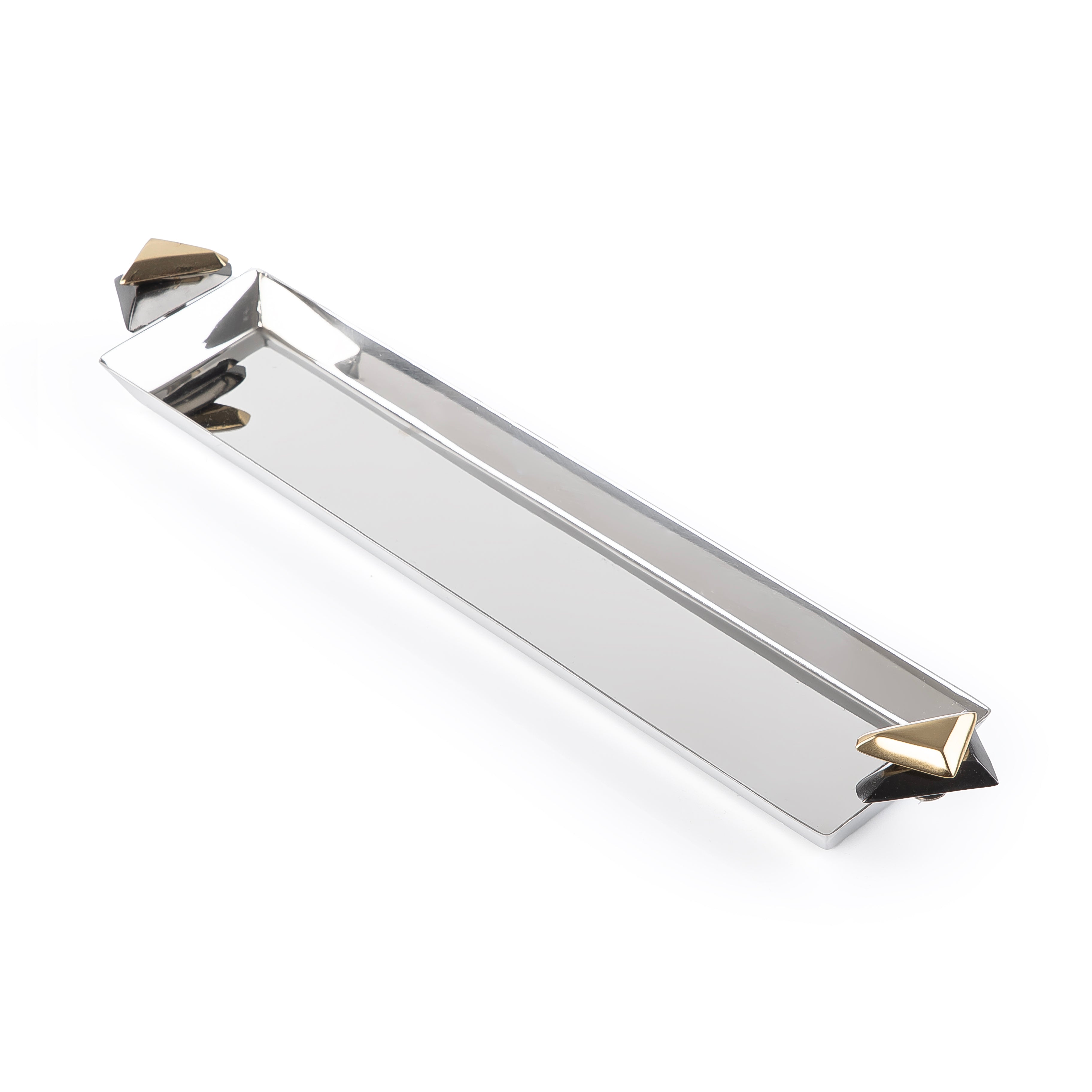 صينية تقديم معدنية طويلة باللون الفضي والأسود - صغير