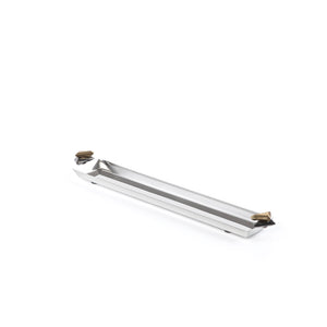 صينية تقديم معدنية طويلة باللون الفضي والأسود - وسط