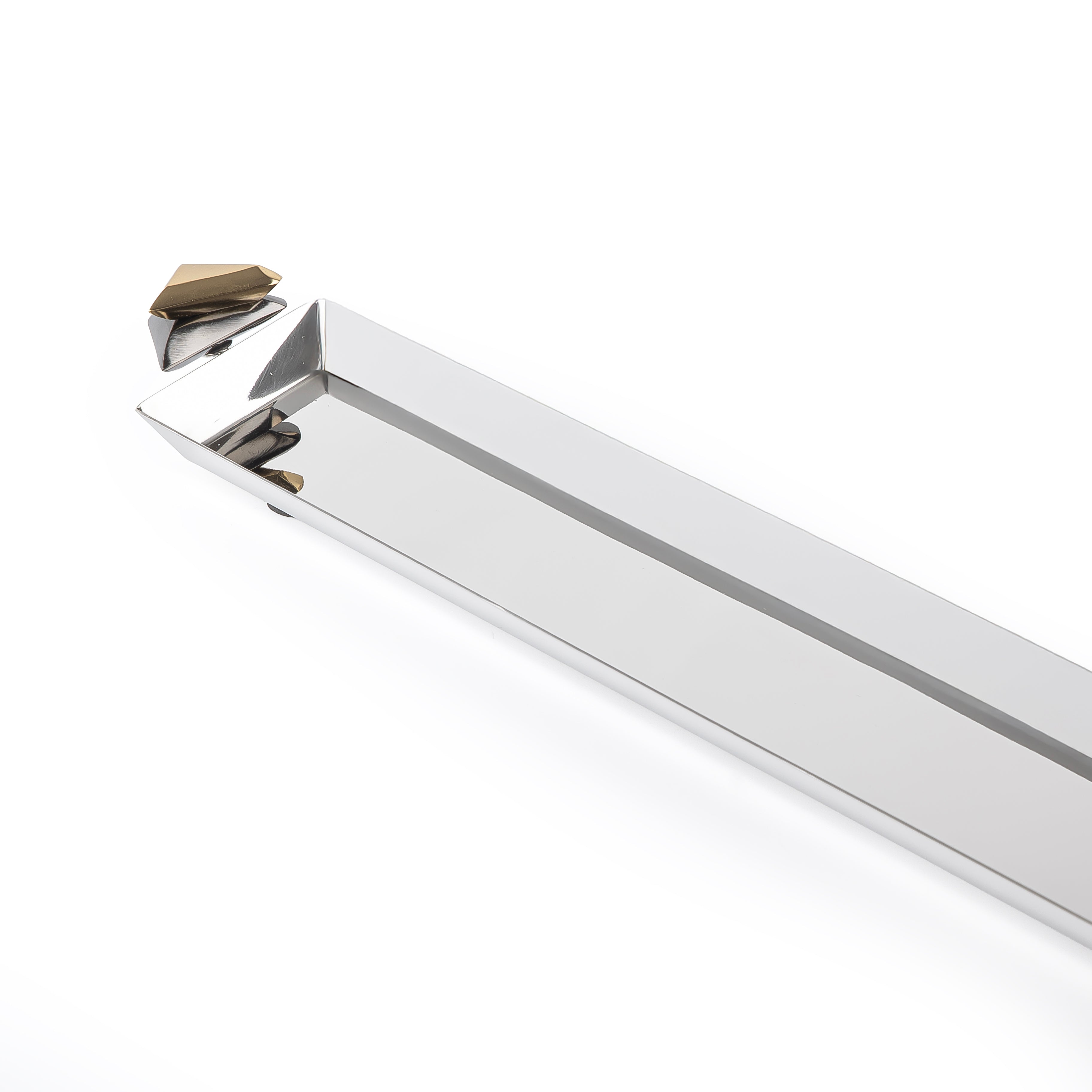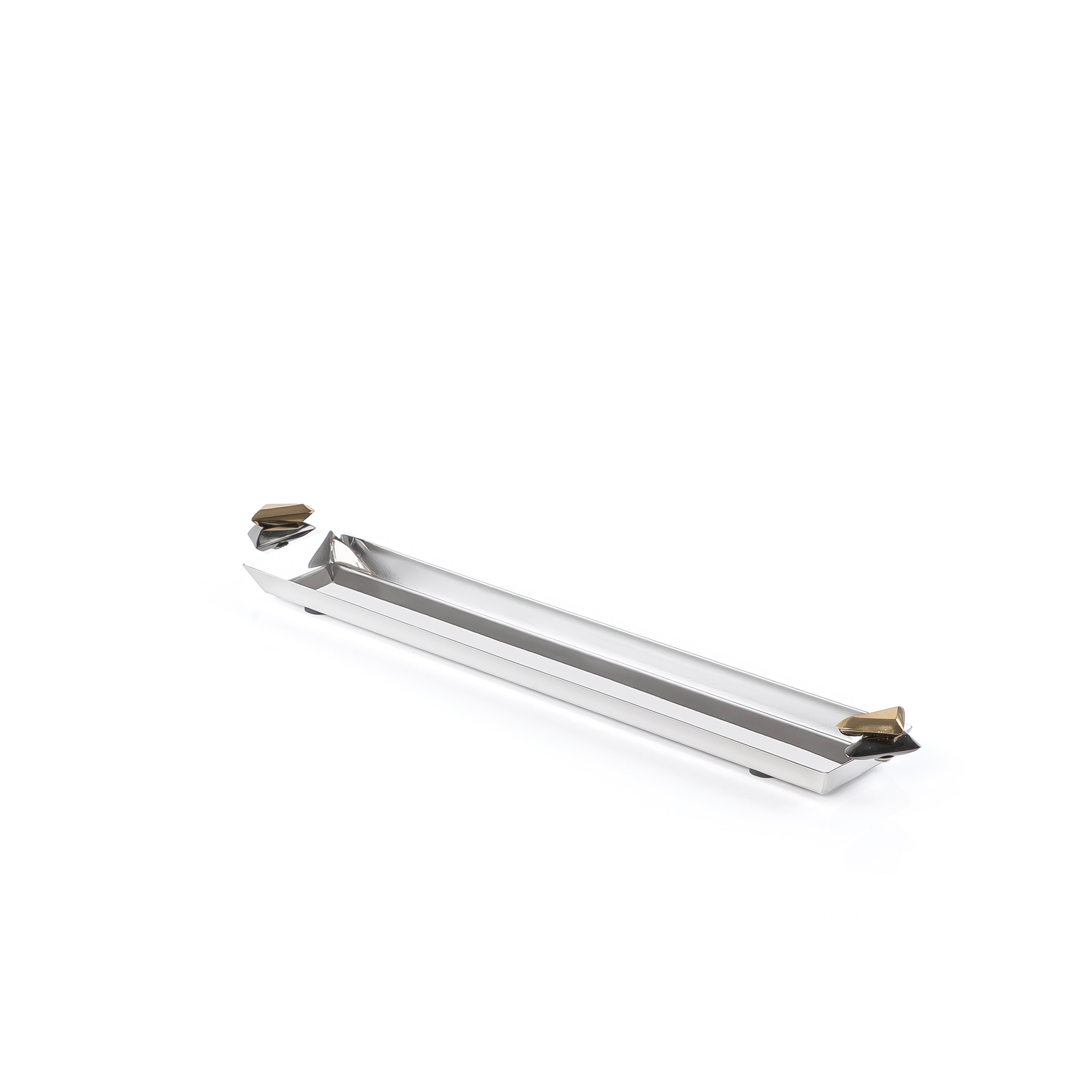 ارتقِ بعرض مائدتك مع هذه الصينية المعدنية الطويلة الأنيقة، المصممة بدقة وبلمسة نهائية جريئة باللونين الأسود والذهبي.