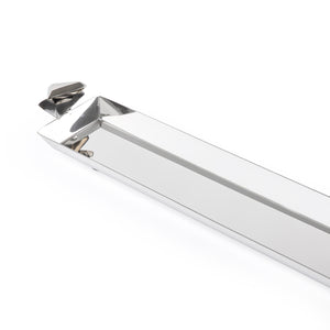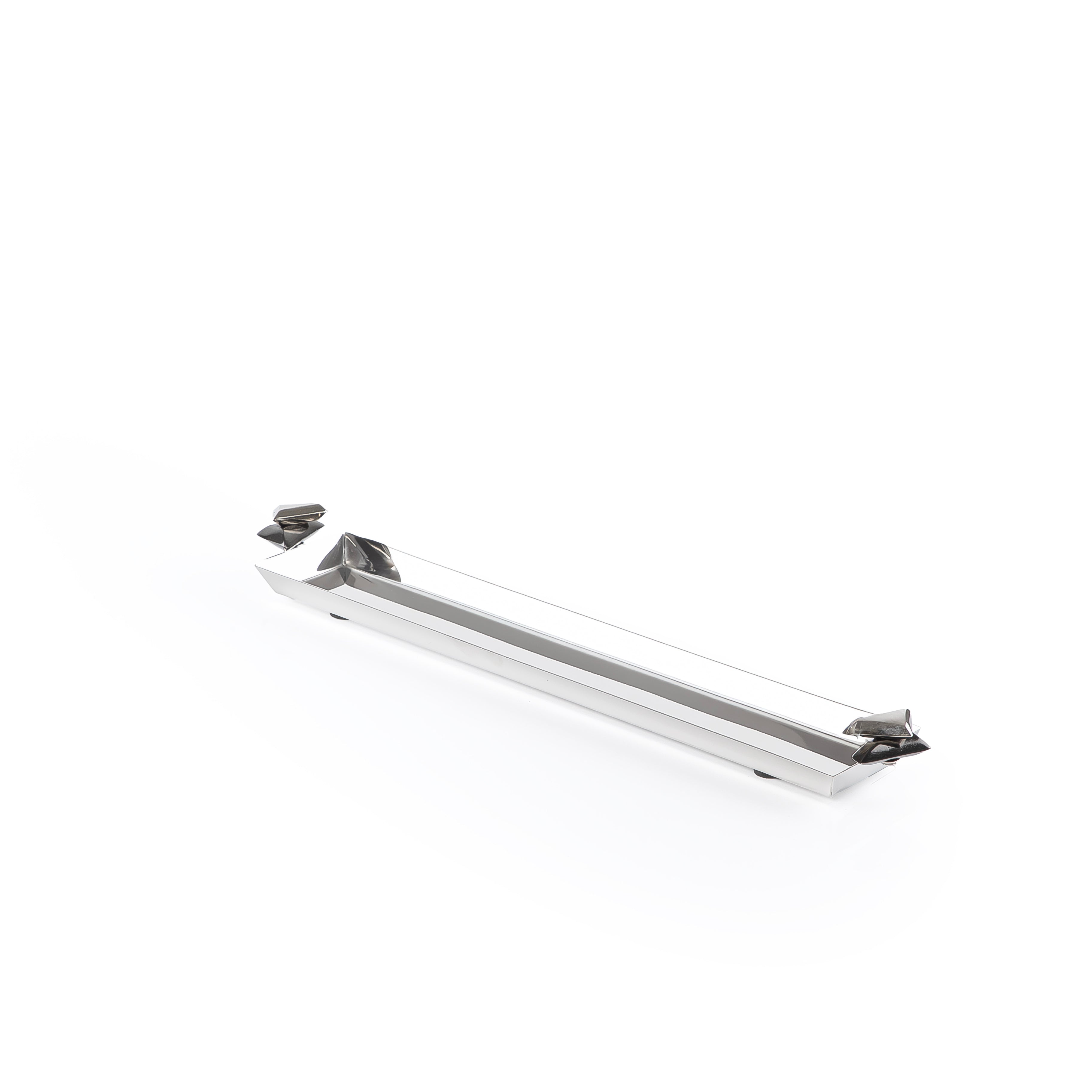 ارتقِ بعرض مائدتك مع هذه الصينية المعدنية الطويلة الأنيقة، المصممة ببراعة وبلمسة نهائية مميزة باللونين الفضي والأسود.