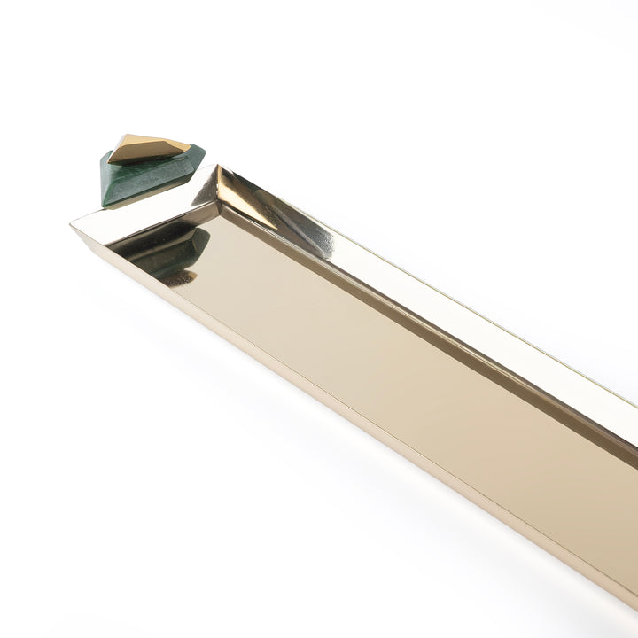 صينية تقديم معدنية طولية باللون الذهبي والأخضر | 60×10 سم