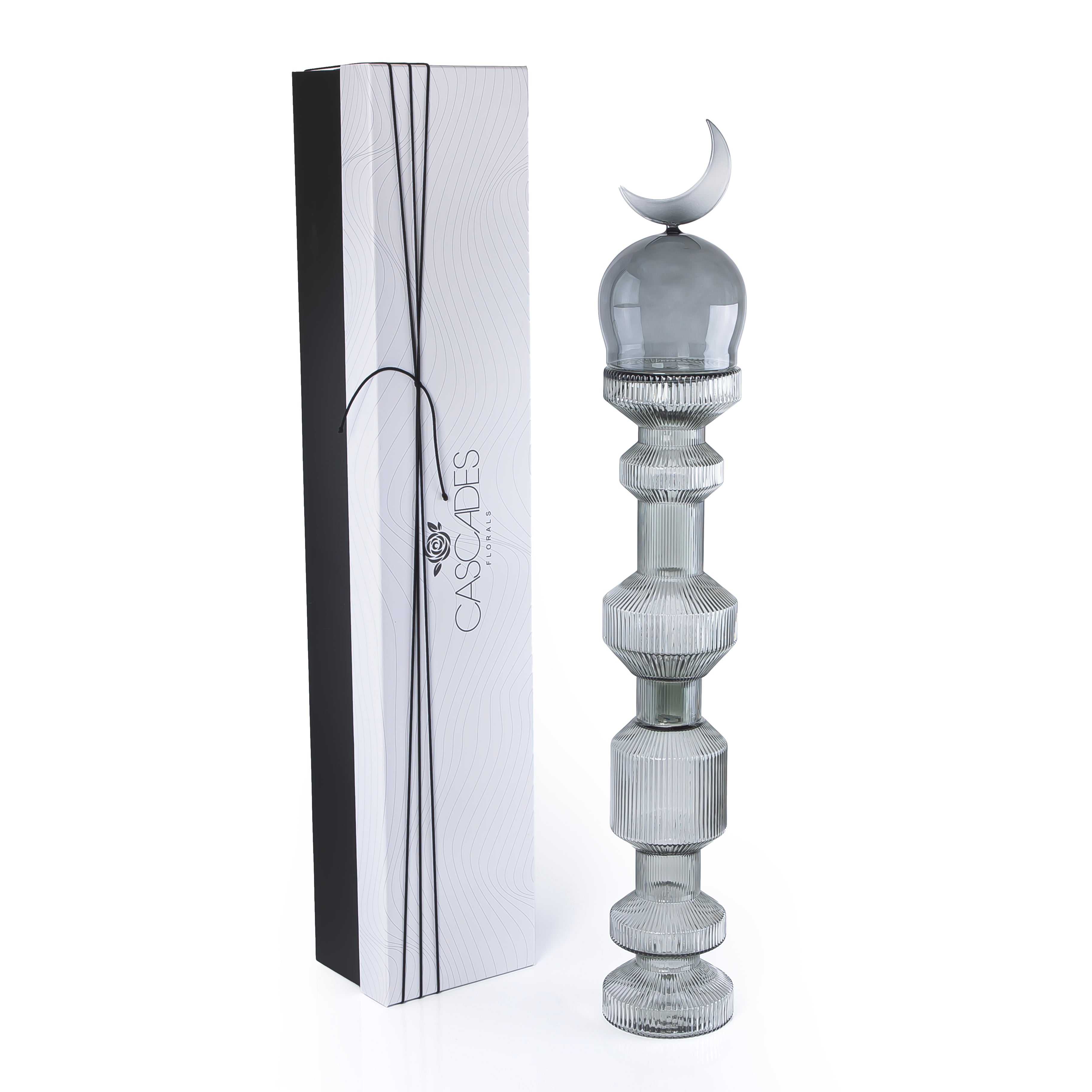 قطعة ديكور زجاجية حجم كبير علي شكل مأذنة مع بوكس هدايا - رمادي